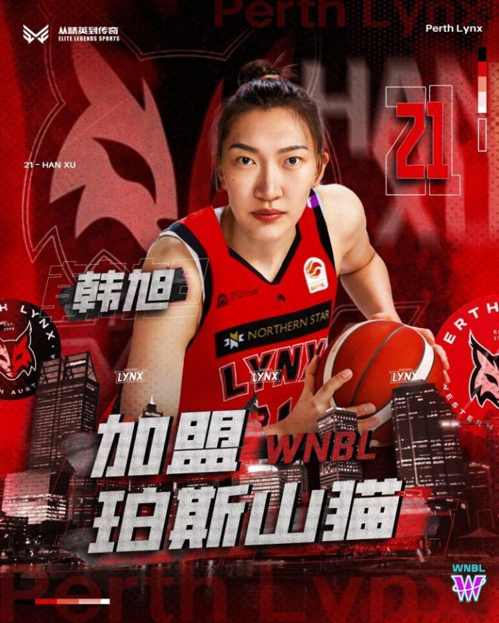 我司签约球员韩旭加盟珀斯山猫队,将征战2025-26赛季澳洲WNBL。